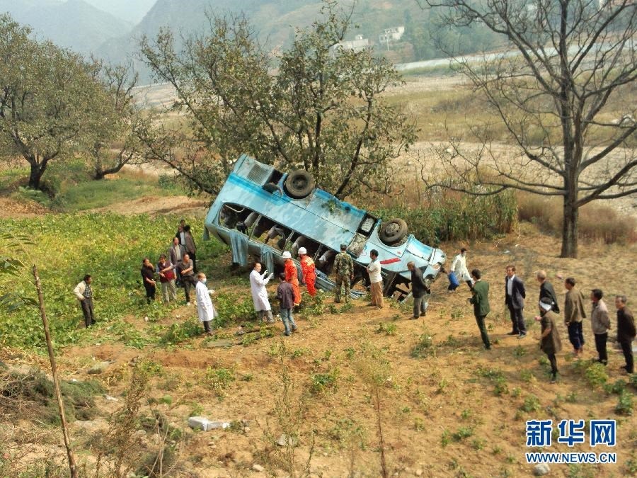 10月8日上午10時,一輛由陜西商南縣發往商洛市商州區的客車行駛至312國道武關鎮1289KM+50M處發生側翻,目前事故造成9人重傷,17人輕傷。新華社發 圖片來源:新華網