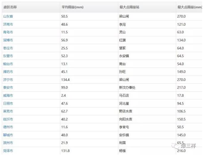 截止到8月19日下午12點40分,過去24小時,山東全省平均降雨量為50.5毫米。將這些雨折合水量,大約相當于下了近7000個大明湖!其中,市平均降雨量最大為濟寧市(134.4毫米);緊隨其后的是菏澤市,平均降雨量達到131.8毫米。全省最大點雨量出現在濟寧市梁山閘站(270.0毫米)。