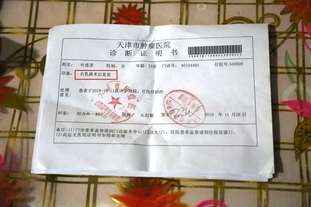 但是歲月靜好只是一場泡影,今年8月,乳腺癌再次復(fù)發(fā),前3期化療效果微乎其微。醫(yī)生悄悄告訴葉連莖的母親黃彩艷,讓她做好心理準(zhǔn)備,癌細(xì)胞已經(jīng)擴(kuò)散到肋骨、胸隔膜、淋巴······如果4期化療失敗,那國內(nèi)真的無藥可救了。