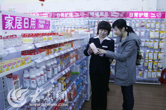 濟南嬰貝兒健康管理顧問有限公司副總經理馬萍給記者講解塑料奶瓶辨別知識