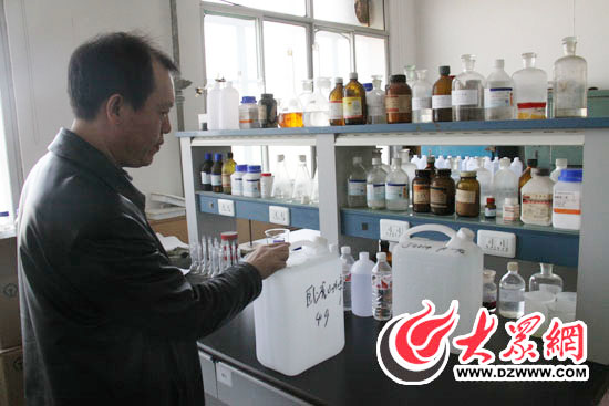 山東省醫(yī)科院放射醫(yī)學(xué)研究所副所長、研究員鄧大平向記者展示臥虎山水庫取樣樣品