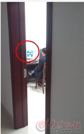 在網友拍攝的曝光圖片中,記者發現還有一名工作人員在玩電腦游戲。