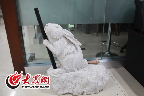 山東白兔商標代理公司內展示的“白兔兒”商標工藝品。