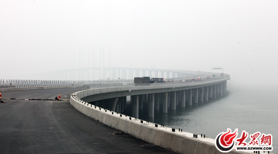 夏日的青島,風景旖旎,記者一行驅車從嶗山區出發,穿過青島市區,從李村河口駛上山東高速膠州灣跨海大橋。一望無際的跨海大橋,似一架長虹與海天共色。行駛在嶄新的柏油路面上寬闊的六車道讓汽車如此平穩舒適,在橋梁兩側,三三兩兩的工人正在安裝高1.4米的防撞彈性鋼護欄,柔和的護欄顏色與天、海、路相襯,美觀而又醒目。