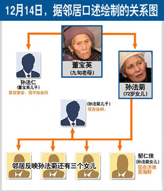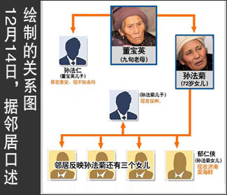 同日 記者得知孫法菊有兄妹5個,且證實外界說的20多年沒聯系子女系誤傳,董寶英的兒子孫法仁幾年還曾來看望過老人,目前不知去向。