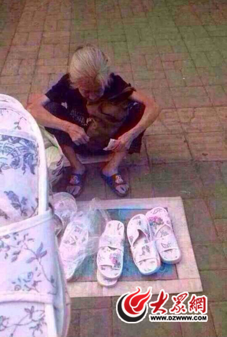 今天中午,某媒體官微轉(zhuǎn)發(fā)濟(jì)南網(wǎng)友“@忘了哭991” 的微博稱:山東濟(jì)南72歲高齡骨瘦如柴的老奶奶,賣自己加工的拖鞋,一塊錢一雙。一塊錢,連半個甜瓜都買不到。大熱天的,老人一天能賣出去幾個?心酸,心疼!地點:濟(jì)南市標(biāo)山南路名酒城斜對面。有路過的小伙伴支持一下!愛心轉(zhuǎn)發(fā),幫幫老人!