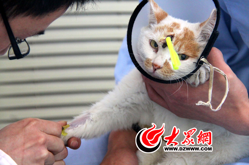 10月17日深夜,流浪貓花花被送到濟南雷歐寵物醫院,它的頭部被疑似努的器械打入兩顆鋼釘。今天一大早,雷歐醫院的醫生們就開始為花花的手術做準備。