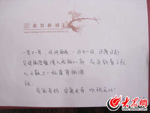 你好!寄來的立功、嘉獎證書收到。你為家鄉爭了光,祝賀你!