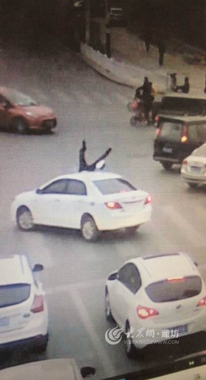 3月12日下午5點30分至5點40分,在濰坊市區(qū)東風街與濰州路交叉口,一輛白色無牌比亞迪轎車將一名女學生撞傷后逃逸,當逃至東風街四平路路口時,又將上前攔截的民警撞傷后沿四平路向南逃竄。