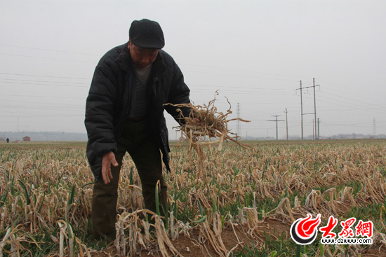 大眾網記者今天上午趕赴大蔥主產地濟南章丘進行調查。“去年這個時候大蔥都長到四五十公分高了,但今年看上去像是剛剛長出芽。”在北方大蔥主產區章丘的一處蔥地里,章丘市棗園街道萬新村的農民何金生指著一片枯黃的蔥地對大眾網記者說,由于遭受“天災”,又遇到罕見的病蟲害,以前畝產7000斤的蔥地,現在每畝只能收3000多斤。