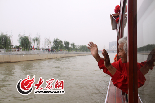 畫舫緩緩駛過小清河,兩岸市民紛紛駐足觀看。