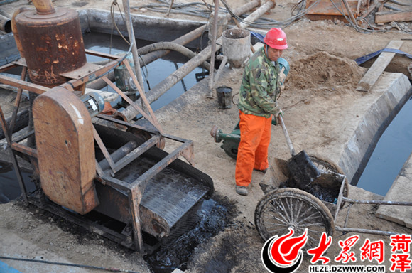 工人清除經過過濾的鉆井潤滑油