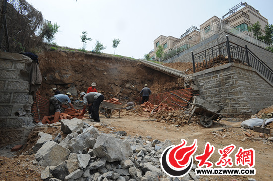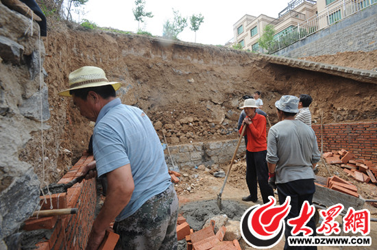 “不讓建車庫了,我們準備填埋這個地方,恢復原樣。”一名施工工人告訴記者,24日他們剛剛開工。但是,如果要恢復護坡,何必在南北兩側砌上磚墻呢?一開始,雖然記者對疑點發問,但幾名施工工人堅持說是要恢復護坡。