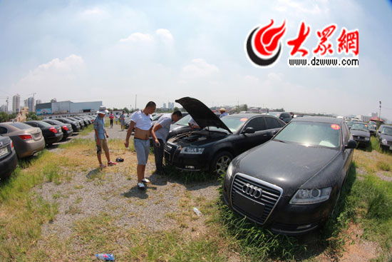 23日至25日,棗莊市一次性網(wǎng)絡(luò)拍賣公務(wù)用車103部,短短幾天吸引300多名購車者登記報名。圖為市民在拍賣公司停車場“相車”。
