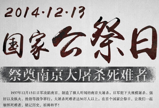 一個國家和他的人民唯有在內心深處放不下那些沉重的記憶,前進的腳步才不會那么輕佻。2014年12月13日,我們舉國祭奠,為歷史,為當下,更為未來。