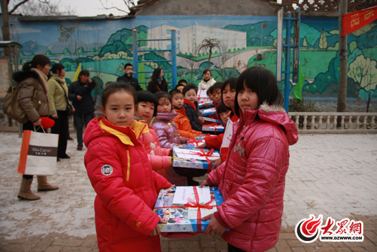 1月28日,山師附小一年級八班的小朋友帶著羽絨服、學具等物品來到濟南市歷城區仲宮鎮劉家慈安小學,與他們結對的小朋友共同交流、玩耍。