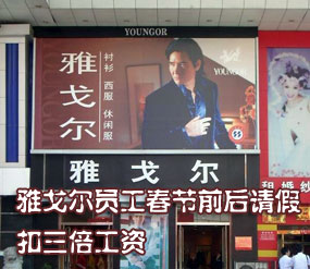雅戈爾集團的子公司寧波雅戈爾日中紡織印染有限公司日前發出通知稱,工人春節前后請假將扣三倍工資。這被稱為“史上最雷人放假通知”。為了留住員工,一些服裝企業為員工提供往返機票、提高加班工資和獎勵出國游等福利。