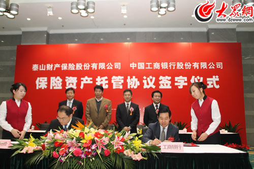 [提要] 11月14日,中國工商銀行、泰山財產保險股份公司在濟南隆重舉行簽約儀式,共同簽署了《保險資產托管協議》,標志著雙方的合作又提升到一個新高度。