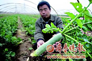 [提要] 面對豐收的蘿卜,王洪濤卻高興不起來,因為到現在為止還沒有人來收購蘿卜。經歷了今年西瓜滯銷后的王洪濤,對今年蘿卜的銷路也倍感擔心,“今年蘿卜千萬別跟西瓜一樣滯銷了,這樣折騰不起”。王洪濤說,去年這個時侯的訂貨價格都在每根蘿卜1塊錢以上,今年這種情況,不知道還能不能賣個好價錢。