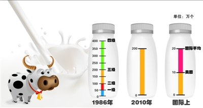 京華時報:舊標準規定生乳中細菌總數分為每毫升低于50萬、100萬、200萬和400萬四個等級。新標準的200萬相當于原來的三級,為什么您認為標準是降低了?