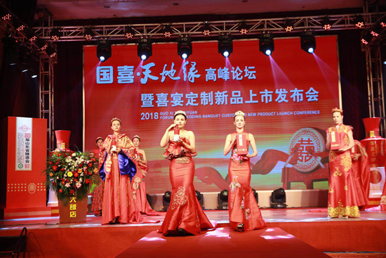 隨后,天地緣喜宴定制新品進(jìn)行了上市發(fā)布。漂亮的酒模對喜宴定制新品進(jìn)行了展示。