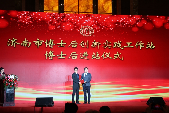 濟南市外國專家局副局長王西金、趵突泉酒業董事長邢憲卿為“濟南趵突泉釀酒有限責任公司博士后創新實踐工作站”揭牌,并同現場嘉賓同時見證了首位博士后李國輝的進站儀式。博士后工作站的成立將大大有利于趵突泉釀酒公司培養引進高端技術人才,進一步提高企業技術研發水平,加強技術創新力量,確保產品質量和食品安全。
