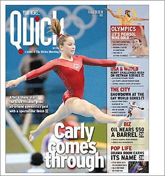 最近幾個月,幾家報紙按照讀者調(diào)查協(xié)會的建議,為吸引年輕讀者做了大膽嘗試。媒體產(chǎn)業(yè)觀察家們不得不贊美甘乃特集團(tuán),該集團(tuán)最近面向25—34歲的年輕人發(fā)行了8種小開本的免費(fèi)周報。與之相似,《達(dá)拉斯早新聞》也把注意力集中其“速食版本”《快》,該出版物為免費(fèi)贈閱,是為了解決公共交通不太發(fā)達(dá)的城市報紙分銷難的問題。