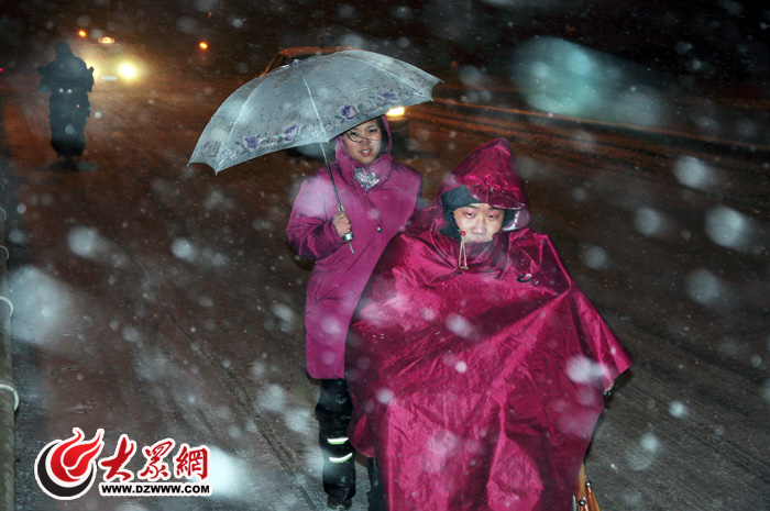 大眾網2月10日訊 “不經意間往窗外一看,天那,下雪了!紛紛揚揚的雪花,在門前路過的汽車車燈的照耀下顯得如此的密集”,瑞雪迎春,今天晚上,一場大雪悄然光臨泉城,給濟南又平添了幾分年的味道,大眾網眾眾微博的博友們紛紛通過微博報起了雪情。據網友“博報”,泰安、日照等下起了大雪,青島的地面上已經結起的冰。博友們還提醒過年回家的人們要注意安全,“遙祝所有正在趕路回家和即將回家過年的游子們,一路順風。”