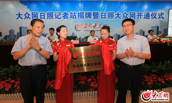 省委宣傳部副部長劉保聚點擊開通了日照大眾網,日照市委常委、宣傳部長毛繼春和大眾報業集團黨委常委、副總編輯郝克遠共同為大眾網日照記者站揭牌。