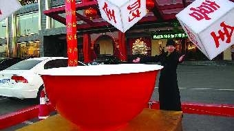 濟(jì)南一酒店兩米大碗?yún)⒃u(píng)賀年會(huì)“之最”。 喬顯佳 攝