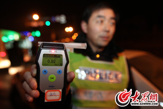 大眾網(wǎng)記者在與機(jī)動(dòng)隊(duì)隨警檢查過(guò)程中發(fā)現(xiàn),從當(dāng)晚10:30至10:50,短短20分鐘內(nèi),交警分別在茂嶺山路、 環(huán)山路、旅游路、解放東路等路段先后查處4名酒后駕駛?cè)藛T,其中一人呼氣酒精含量達(dá)到0.92mg/l。