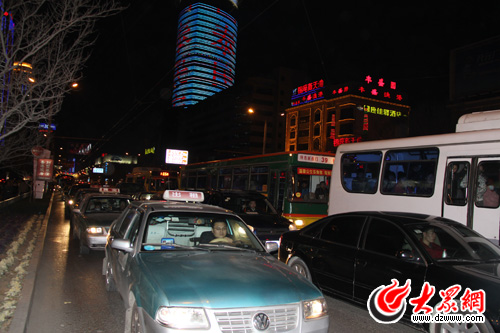經過大約一個小時的等待之后,晚20點05分左右記者終于成功由千佛山南路轉入舜耕路,經過20分鐘的走走停停后,駛入目的地舜玉路附近。記者粗略算了一下:從山東新聞大廈出發至舜玉路東口大約5公里的距離,竟花費了兩個半小時的時間。