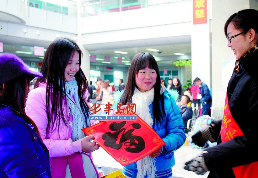 農歷小年,青島汽車北站給乘客送"福"