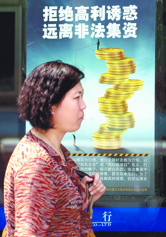 某銀行張貼的打擊非法集資的招貼。