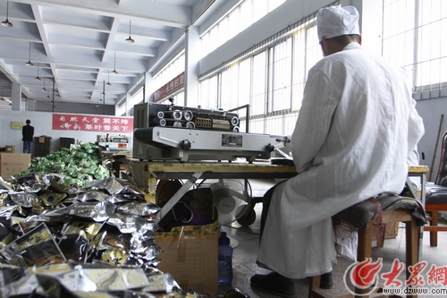 北川茶企佛泉廠房內(nèi)工人正緊張包裝今年新茶