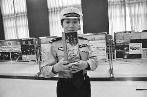 交警向記者展示印有“駕車不飲酒,幸福伴你走”的臺卡
