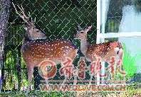 在游客參觀時,由于人比較多,記者注意到梅花鹿和長鬃山羊開始都離得比較遠,不太敢靠近游客。雄性梅花鹿繁星相對比較大方,悠閑地在室外漫步,雌性梅花鹿點點則緊跟著繁星,形影不離,十分恩愛。喜羊羊和樂羊羊都比較害羞,大部分時間躲在假山和樹陰后,遠遠地打量著游人。