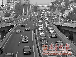 5日上午10點多,記者在非高峰時段駕車在膠州路上東西快速路發現,在東西快速路市立醫院附近的路段發生擁堵。記者從中山路經快速路到銀川路下橋口,正常通行需要不到15分鐘,記者卻走了30多分鐘。如果是碰到上下班高峰時段,同樣的道路要走1個多小時。