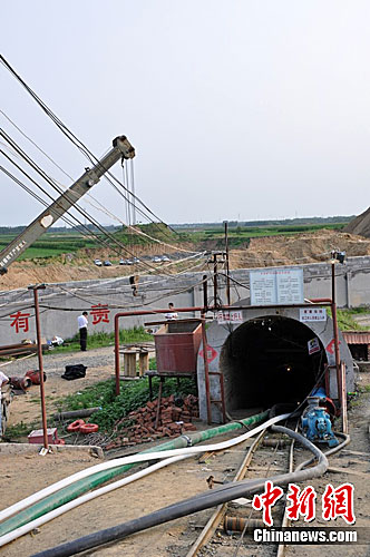 7月10日晚11時左右,山東濰坊市坊子區正東礦業有限公司發生井下透水事故。圖為發生透水事故礦井現場。中新社發 胡洪林 攝