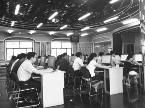 記者在考場內看到,每名考生一臺計算機,計算機上已經預裝了“黨政領導干部能力素質測評系統”,在這個系統下,考生要在45分鐘里回答10道案例題。每道案例描述了1個領導工作情景,反映了需要解決的矛盾和問題,并列出了解決問題的措施或辦法。