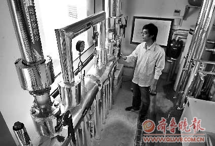 抽取淺層地熱能的幾組U形管,埋在院子里的空地里,而組合了壓縮機、膨脹閥、四通換向閥、冷凝器、蒸發(fā)器等的地源熱泵機組整合在一起,安放在四合院的西廂房里。正屋里,一臺計算機實時收集、監(jiān)控水流、地下溫度場的變化!笆紫冗@是一個示范工程,讓人對地源熱泵有直觀的印象。”常久春總結,“其次是對淺層地熱開發(fā)利用的數據收集,這個試驗室即將進行的測試,將為山東乃至全國淺層地熱的研究和推廣應用提供最基礎、最準確的數據!