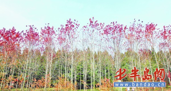 對此,這批秋紅楓的引進企業——青島頤豐環保科技有限公司銷售部工作人員李丹向記者介紹,此片秋紅楓當初種植時密度過高,葉子越靠下越難以接受充足的光照。該公司總經理孫中全介紹說,由于種植過密,楓樹的光合作用不充分 ,導致長期“營養不良”,因此頂部光照較好的樹葉也就較密較紅,底部的樹葉則過早凋落。