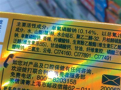 今天上午,記者探訪了中山路上的大型商場,在其中一家商場的牙膏銷售區(qū)域發(fā)現(xiàn),高露潔、佳潔士、冷酸靈等多數(shù)牙膏品牌都沒有標注其成分中含有“三氯生”,只發(fā)現(xiàn)田七本草牡丹靈敏感牙膏和中華全效護齦牙膏等國產(chǎn)品牌的部分牙膏產(chǎn)品成分中標有“三氯生”,但并沒有標注其含量多少。至于早前高露潔生產(chǎn)的一些全效抗菌牙膏含三氯生成分,高露潔方面則表示,那些當時在中國只占有很小的市場份額。今年初,出于公司商業(yè)運作的考慮,高露潔已在中國停止生產(chǎn)全效抗菌牙膏,就是說已不再含三氯生成分。(記者 張譯心)