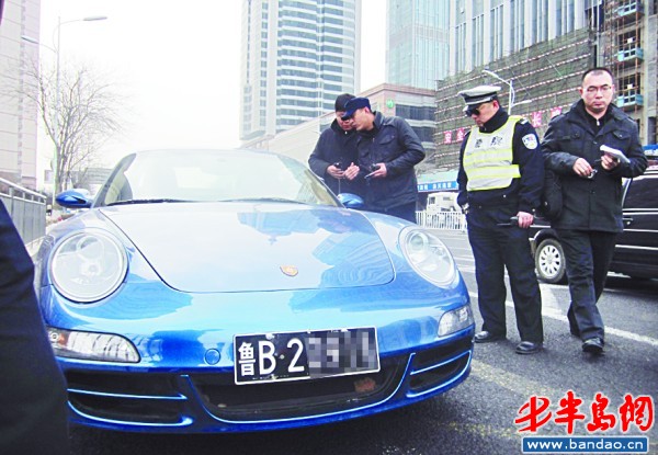 3月3日上午10時(shí)許 ,執(zhí)勤民警在山東路巡邏時(shí),發(fā)現(xiàn)路邊停著一輛只有前牌的黑色桑塔納轎車(chē)。經(jīng)過(guò)查詢(xún)發(fā)現(xiàn),該車(chē)果然是“張冠李戴”,冒用了江蘇一輛綠色吉普車(chē)的牌照。由于沒(méi)有找到桑塔納司機(jī),民警決定暫時(shí)先把違法車(chē)輛拖走。就在此時(shí),一輛途經(jīng)此處的藍(lán)色保時(shí)捷跑車(chē)引起了執(zhí)勤民警的注意。“這輛車(chē)的車(chē)牌也有問(wèn)題。”市南交警大隊(duì)香港西路中隊(duì)副中隊(duì)長(zhǎng)李國(guó)輝告訴記者,經(jīng)過(guò)前后比對(duì)發(fā)現(xiàn),這輛保時(shí)捷的后牌是偽造的。由于保時(shí)捷的駕駛員是一位烏克蘭籍女士,經(jīng)過(guò)簡(jiǎn)單交流,記者得知,這輛車(chē)的后牌確實(shí)被換過(guò),但她同時(shí)表示因?yàn)椴皇亲约核鶠椋膊涣私庠斍椤?/P>