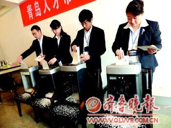 本報青島3月15日訊(記者 李曉聞) 15日,青島市人才市場人事誠信調查所將10年來查處的7000余份假學歷證書集中銷毀。這些看上去十分逼真的證書,被4名工作人員一一塞進碎紙機,變成一堆碎紙屑。這是人事誠信調查所成立10年來查獲的所有假學歷,數量占總調查數的10%。目前,島城已有衛生、出租、金融等多個行業整體推行了人事誠信調查。
