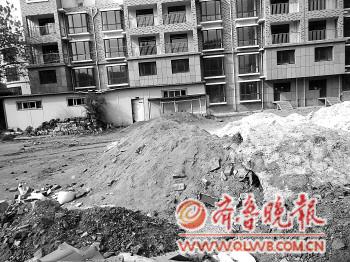 19日,舜耕名筑施工現場有不少沙土堆。本報記者邱志強攝