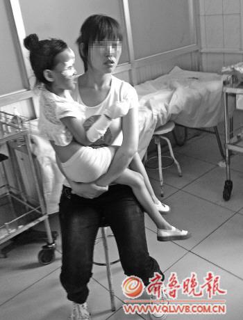 一個受傷的孩子正在院內接受治療,臉上涂滿了藥膏。 本報記者 郇恒吉 攝