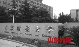 昨日,工作人員正在去“籌”。距離6月9日去“籌”儀式還有四天,山東財(cái)經(jīng)大學(xué)燕山校區(qū)的大門(mén)口校名中的“籌”字已經(jīng)被去掉。通訊員 隋夢(mèng)婕 記者 徐玉芹 攝