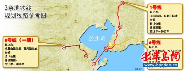根據(jù)《青島市城市軌道交通近期建設(shè)規(guī)劃(2013年~2018年)》,本市將在已批地鐵3號線、2號線一期工程的基礎(chǔ)上,新建地鐵1、4、6號線,全長90余公里,至2018年底,將形成約150公里的地鐵骨干網(wǎng)絡(luò),基本覆蓋七區(qū)和主要對外交通樞紐。而此前環(huán)保部門公布的環(huán)評公示顯示,本市城市軌道交通近期規(guī)劃建設(shè)的地鐵1、4、6號線,從2013年至2015年每年開建一條。