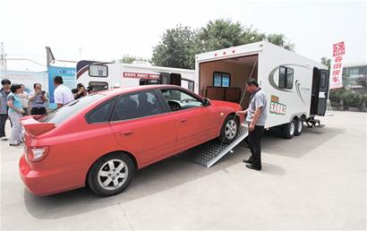 “根據客戶個性化定制,其中一輛房車上還配置了車庫,可以將跑車、沙灘車等不適于長途跋涉的車輛裝在房車內運輸,等到達目的地后再將這些特種車輛駛出。”該房車營銷公司總經理劉杰說。